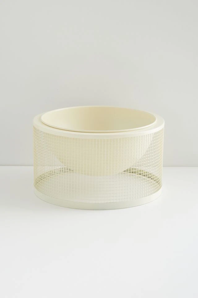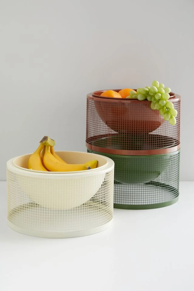 Bring modern style to your produce when you store your fruits and veggies in this iron fruit bowl featuring a gridded wire basin with a built-in spherical bowl.