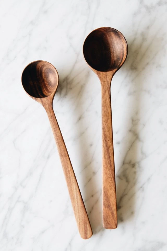 These beautifully grained acacia wooden cooking spoons are hand carved by talented artisans in India.