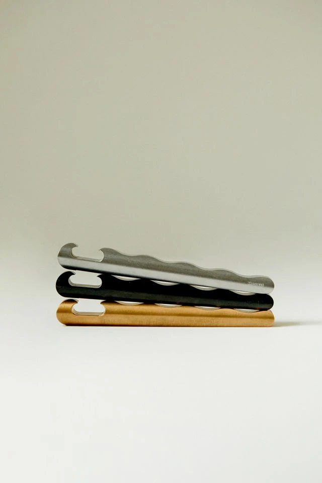 A classic churchkey-style bottle opener milled from 5/8″ diameter stainless steel in Wisconsin. The wave-like profile provides extra purchase when in use, and also adds visual and tactile interest. We challenge you to find a bottle opener that’s more satisfying to use. Learn more about the development of the Ripple Opener here.