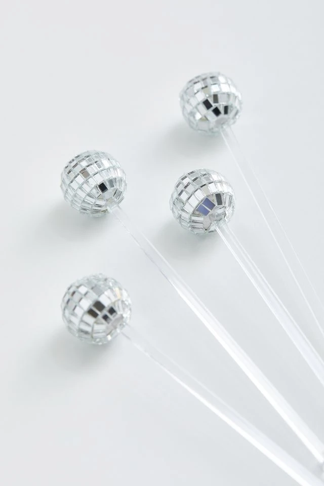 Stir your beverages to perfection with this set of drink stirrers. Topped with a shimmering disco ball that adds the grooviest feel to your bar cart.