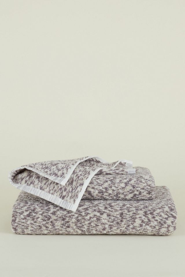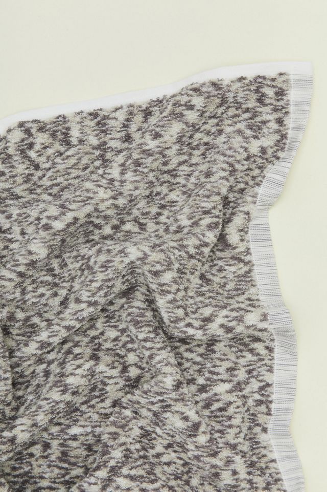 Cotton terry finished with a space dye technique (which blends 3 colors on a single thread) for a cool melanged patterning.