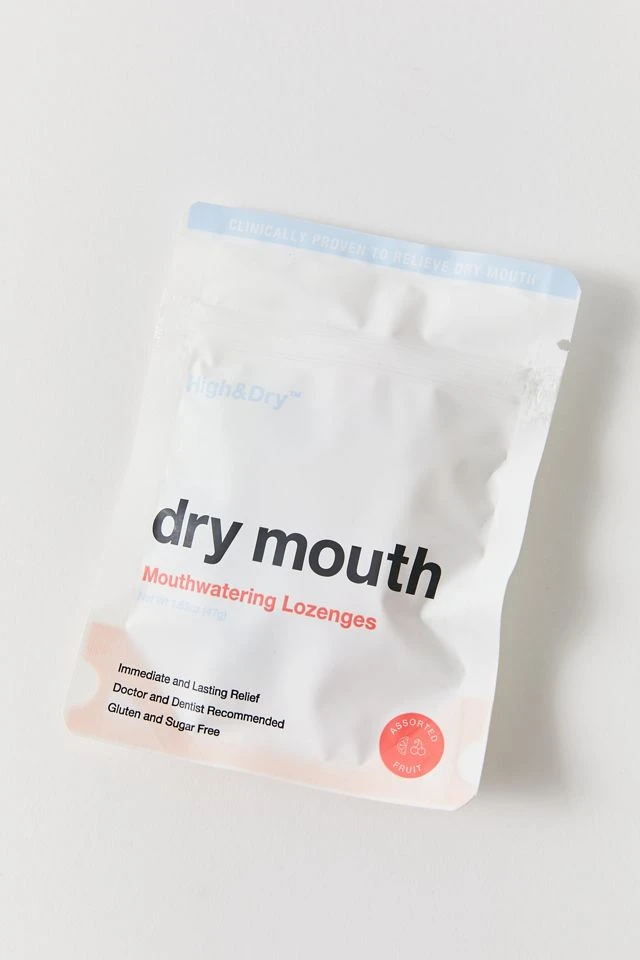 Inspired by Eastern Medicine, High&Dry Mouthwatering Lozenges are made with a proprietary blend of natural herbs and spices that activate the flow of saliva in the mouth’s submandibular glands, providing immediate and lasting relief from dry mouth symptoms. The Assorted Fruit flavor is naturally sweetened, and gluten and sugar-free.