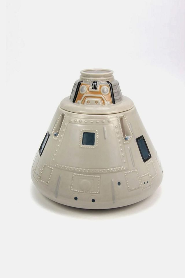 This ceramic cookie jar is out of this world! Stash your cookies (or other small valuables) in this 3D ceramic cookie jar in the shape of the Apollo command module capsules! Officially licensed.