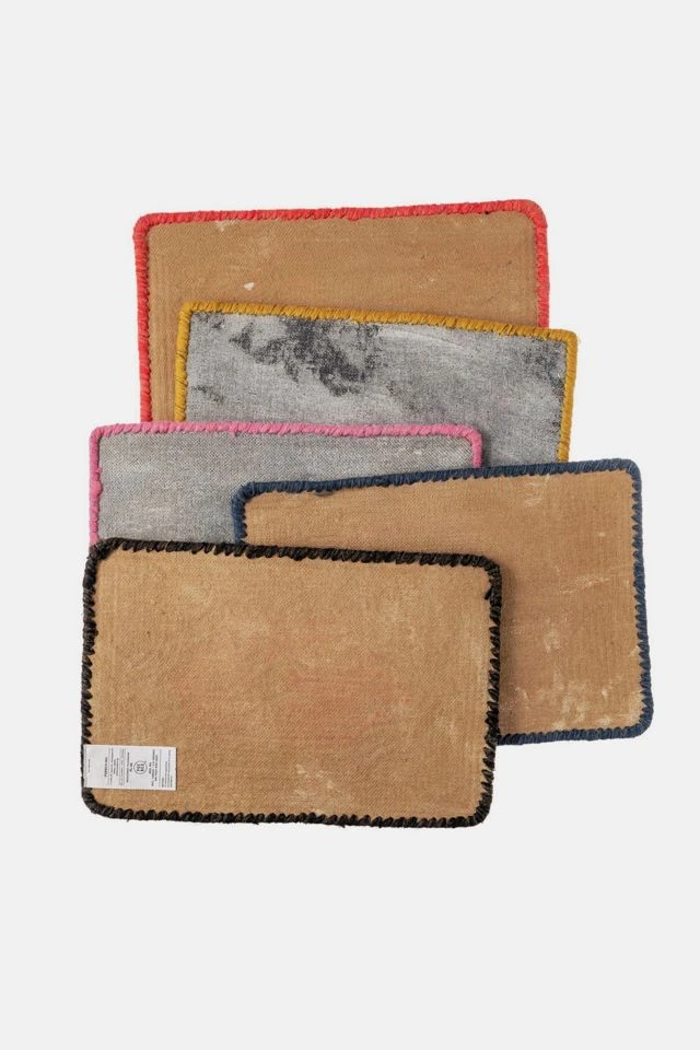 Topped with a central pattern featuring geometric motifs and a vintage-inspired look, this bristled placemat is perfect for framing dishes, planters, vanity accessories and more. Each one-of-a-kind, the placemat you receive will vary in design and color from what’s pictured here. Sold as a single placemat.