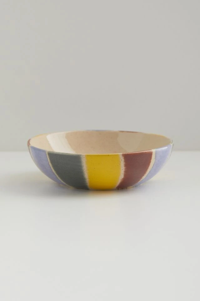Indulge in a bowl of the tastiest treats with this low-profile bowl featuring tonal stripes painted all over that lends a statement-making touch to your table. Pair it with other favorites from our Rhoda collection to create a coordinated dining set. The bowl you receive may vary slightly from what’s pictured. Available exclusively at Urban Outfitters.