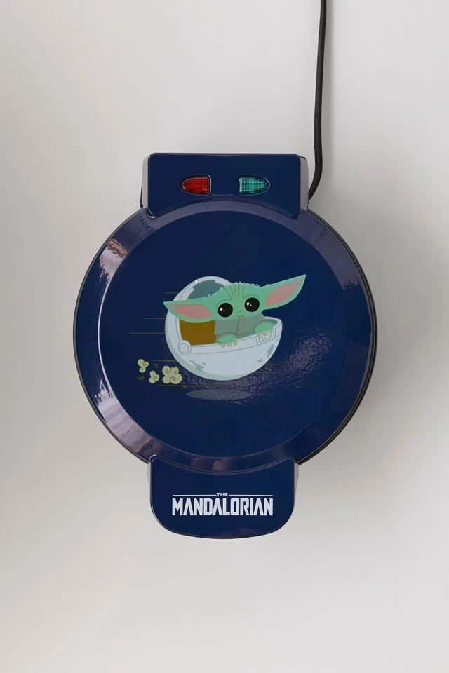 Take your breakfast to a galaxy far, far away with this Star Wars The Mandalorian-themed non-stick waffle maker. Equipped with a regulated thermostat and weighted lid to ensure even heating, this waffle iron cooks a Baby Yoda silhouette into your tastiest creations. Perfect for the Star Wars fan in your life, this waffle maker can be used to make eggs, brownies, cakes and quesadillas.