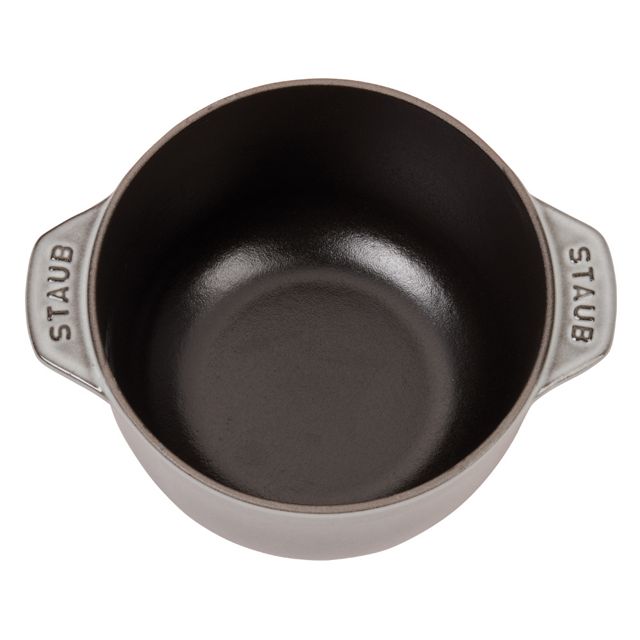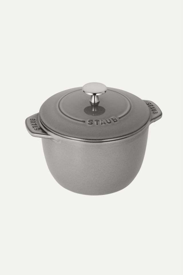 Staub’s 1.5 quart Cast Iron Petite French Oven boasts the benefits of a full-size cocotte in a compact size. Get fluffy rice, tender grains and creamy oatmeal thanks to Staub’s signature new lid. Staub’s latest innovation, the Chistera drop-structure lid, has solved the challenge of curved lids – they limit moisture to sides – by ensuring continuous condensation throughout. Unlike countertop rice cookers, Staub’s Petite French Oven can be transported from the stovetop to the table. No need for serving bowls; these charming cocottes take care of both cooking and plating. Rice has never been so easy to make. Made in France. Dimensions: 8.27 x 6.30 x 6.10 in