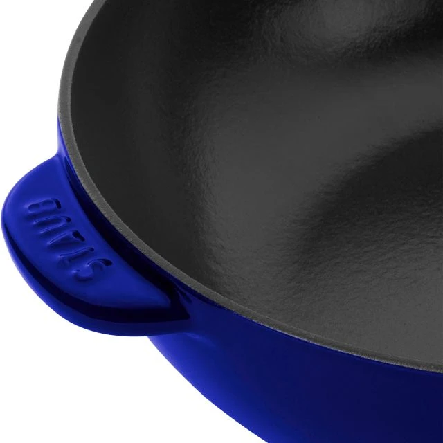 The everyday pan that will never leave your stovetop. This 2.9-quart pan with tempered glass lid is the ultimate multi-tasker in the kitchen. Its high sloped sides make it ideal for sautéing, frying, braising, and more and it’s perfect for dishes that are browned on the stovetop and finished in the oven. The heavyweight glass lid locks in moisture so you can expect flavorful results, and you can conveniently monitor cooking without removing the lid. Cast iron possesses exceptional heat-retaining qualities, so the pan heats evenly throughout. And when it’s time to serve, you can bring this elegant pan straight to the table. Rooted in French culinary heritage, STAUB cookware is beloved by professional and home chefs for its exquisite craftsmanship, exceptional performance, and timeless beauty. Each piece of STAUB cookware effortlessly and elegantly transitions from the oven to the table – you can cook and serve in the same dish. These heirloom pieces can be lovingly passed from generation to generation.