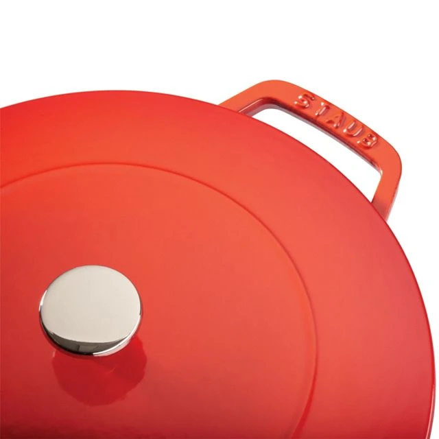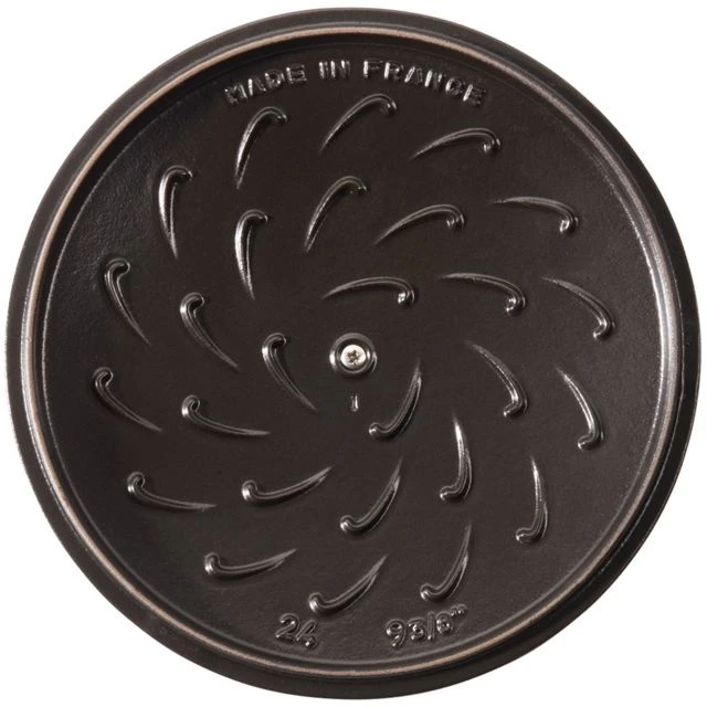 Staub enameled cast iron cookware is the top choice for chefs and home cooks alike. Rooted in French culinary heritage, Staub’s renowned cocottes are timeless pieces, perfect for casual meals or sumptuous suppers. The Essential French Oven with Chistera lid is the latest star in the cast iron collection. Like Staub’s signature flat lid, the domed Chistera lid has excellent self-basting properties. Usually, a convex lid causes condensation to fall to the sides. The innovative, Chistera drop-structure lid solves this problem by putting a twist on traditional spikes. Moisture cascades from the whole lid. This continuous basting guarantees delectable roast chicken and braised short ribs. What inspired this original design? Basque pelota players use wicker basket chisteras to scoop up balls and hurl them quickly. Under Staub’s new lids, the chistera-shaped curves gather condensation to shower moisture upon the delicious dish that simmers inside. Specifications: 12.13 inx9.45 inx5.12 in. 10 lb.