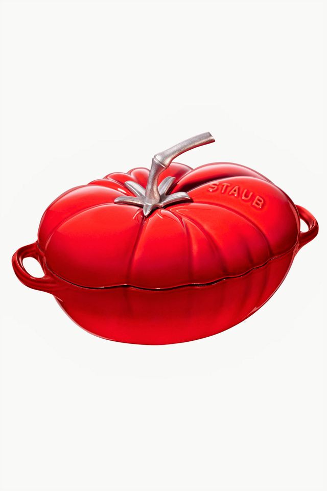The resounding success of the Staub Pumpkin had us asking what other heirloom fruit or vegetable should we bring to Staub. We wanted something that could compliment the pumpkin for the collector. We scoured farmer’s markets to find our muse, and after much looking we landed on the Brandywine Tomato. The Brandywine is an heirloom cultivar which bears large beautiful tomatoes that are popularly considered among the very best tasting. The Staub cocotte is unsurpassed for slow-cooking meats and vegetables to tender perfection, and for simmering hearty stews and soups. Cast iron possesses exceptional heat-retaining qualities, so the pot heats evenly throughout. This pot also makes a handsome serving vessel at the table. Specifications: 12.80 in x 8.27 in x 6.10 in. Weight: 10 lb.