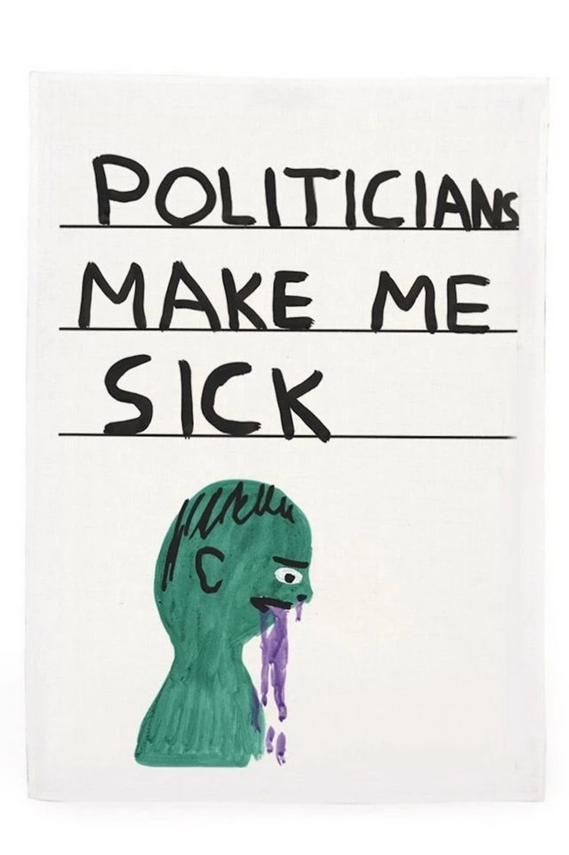 A popular David Shrigley sentiment. Now available as a 100% linen tea towel. Utilisation definitely not limited – frame it, stretch it (on canvas) or use it!