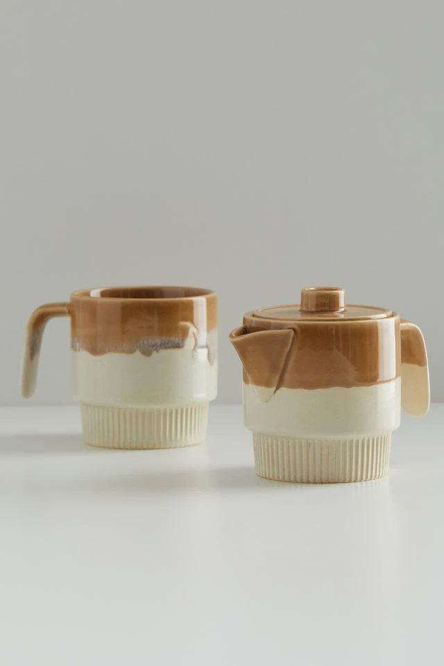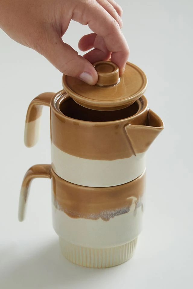 Bring an artful ambiance to your next tea party with this stackable teapot set from United By Blue. Equipped with a mug that fits perfectly at the base of the teapot, this set features a split-dye design finished with a speckled glaze we love. Textural ridged base adds a playfully modern feel to your tablescape.