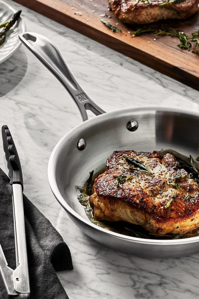 ZWILLING Spirit 3-Ply gets you in the mood to cook. Thanks to a thick, aluminum core, these versatile pans are fast-heating and boast an even cooking surface. The exclusive, stay cool handles are designed for easy maneuvering with oven mitts and the dripless pouring rims help prevent kitchen spills. 3-ply construction from rim to rim. Large, stay-cool loop handles designed for easy maneuvering and control while wearing oven mitts. Oven safe up to 500°F / coating and glass lids 400°F. Dishwasher safe. Compatible with gas, induction, ceran, halogen, and electric cooktops. Made in China.
