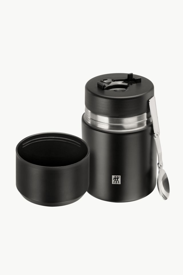 ZWILLING Thermo is the healthy, sustainable choice for enjoying home cooked meals or home brewed drinks on the go. Whether you are taking your lunch to school, your coffee to work, infused drinks on a hike, or a cold beverage on a long drive, Thermo offers leakproof, double-walled vacuum insulated containers of superior design. Perfect for soups, pastas, fruits, salads, and more when you want to bring your meal with you. Hot food stays hot for up to 8 hours and cold food stays cold for up to 11 hours. The lid doubles as a bowl and features a foldable metal spoon.